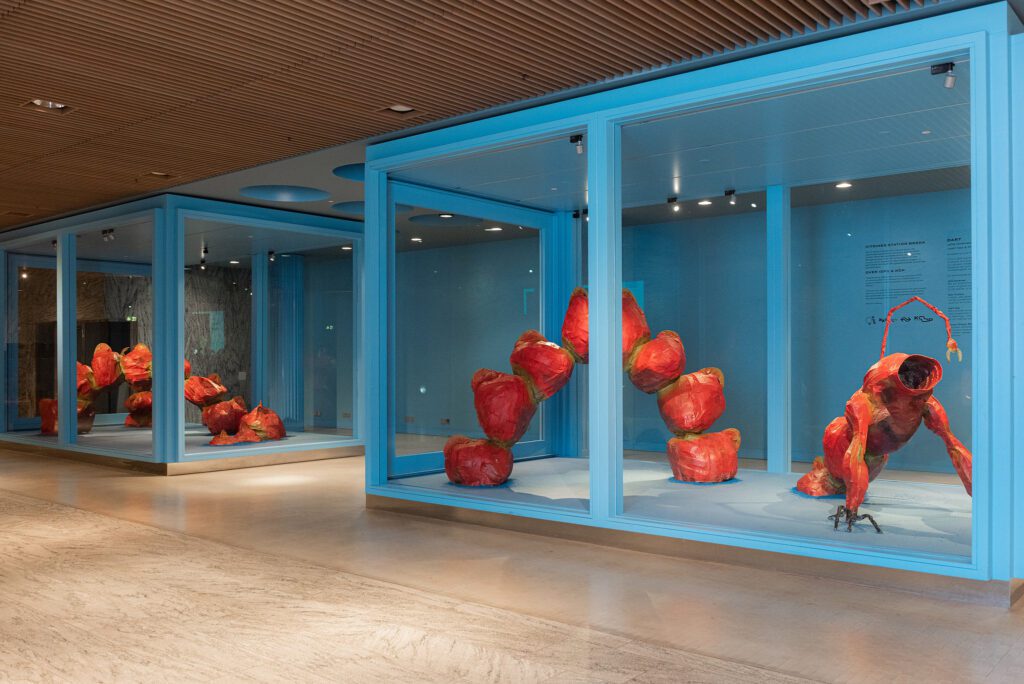 De werken van Jelle Korevaar en Sien Custers worden samen gepresenteerd in een van de kunstvitrines, terwijl de andere vitrine is gereserveerd voor de werken van Joeri Ista en Chryso Amaya Michailidis. Deze opstelling versterkt de dialoog tussen de verschillende artistieke benaderingen en thematieken.